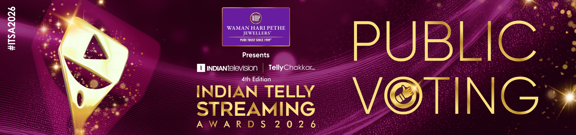 इंडियन टेली स्ट्रीमिंग अवार्ड्स 2026 के लिए पब्लिक चॉइस वोटिंग के ज़रिए एक रोमांचक नई पहल की घोषणा करते हुए हमें बेहद खुशी हो रही है - हमारे #StageKeKareeb, StarsKeSaath अभियान के साथ भाग्यशाली विजेताओं को शो लाइव देखने का मौका मिलेगा! बस अपना वोट डालें और आप प्रतियोगिता में शामिल हो जाइए। हर हफ्ते, 5 भाग्यशाली वोटर्स इंडियन टेली स्ट्रीमिंग अवार्ड्स 2026 के मुफ्त टिकट जीतेंगे, जिससे उन्हें ग्लैमर को करीब से देखने, अपने पसंदीदा सितारों से मिलने और लाइव शो का लुत्फ़ उठाने का मौका मिलेगा।
